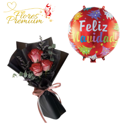 RAMO DE 3 ROSAS + GLOBO NAVIDEÑO