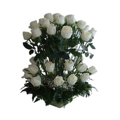 CANASTA DE 12 ROSAS IMPORTADAS Y FOLLAJE