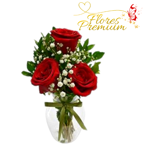 FLORERO DE 3 ROSAS Y FOLLAJE