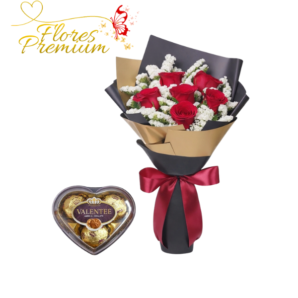 RAMO BOUQUET DE 10 ROSAS IMPORTADAS Y 12 BOMBONES FERREROS ROCHER