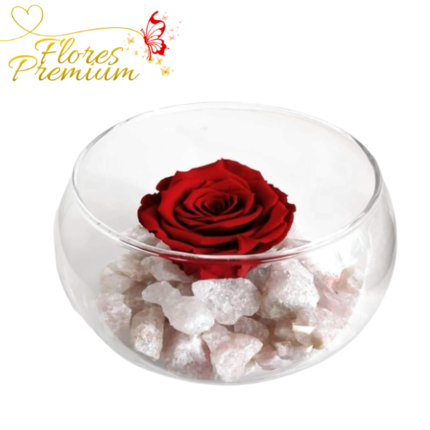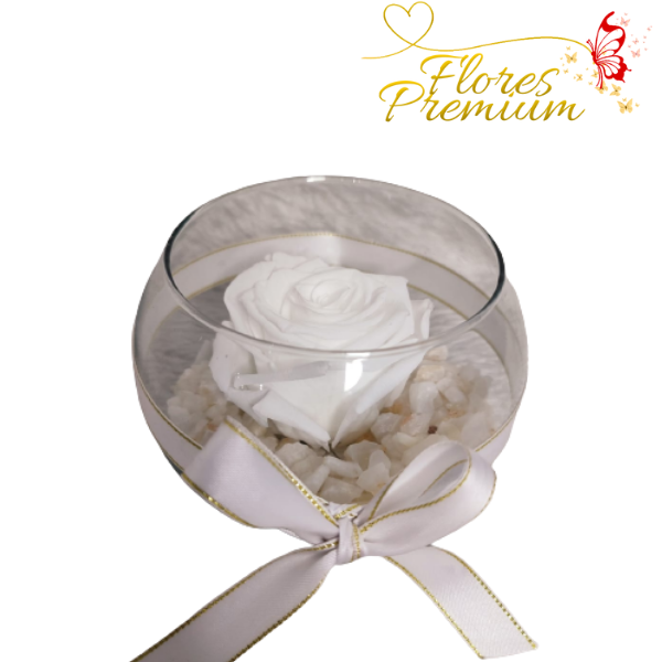 ROSA PRESERVADA EN PECERA Y PIEDRAS